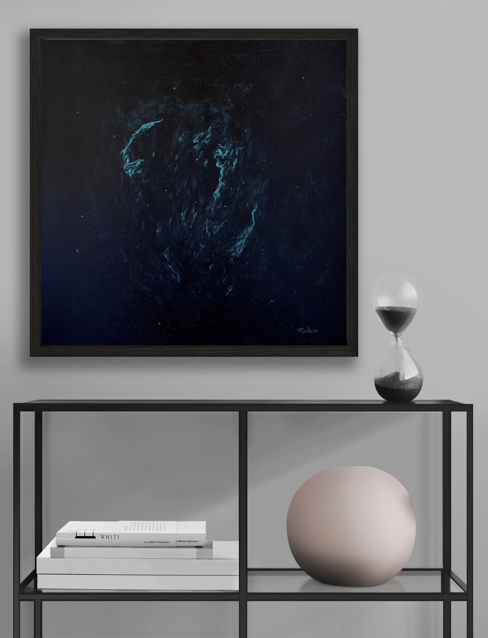- Sides painted black & does not require a frame for display